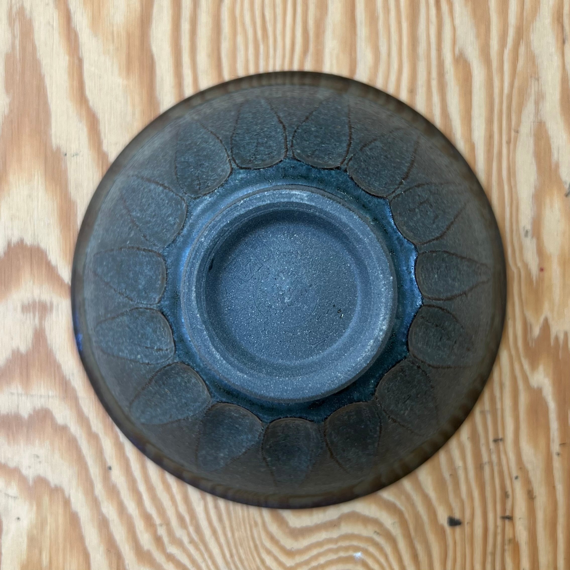 青い釉薬の濃淡が、とても綺麗な茶碗です。
