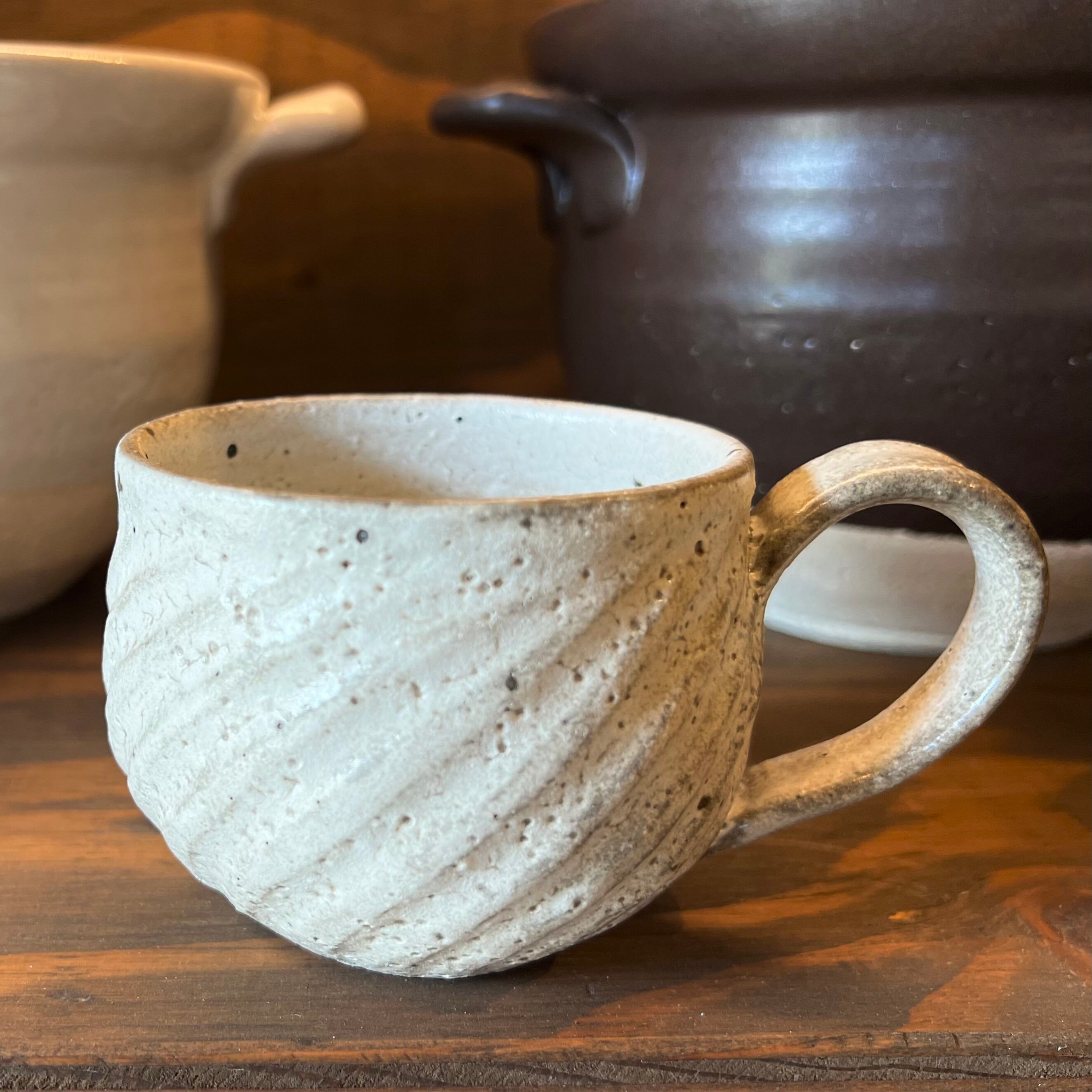 【丹波焼 / 閑心窯】斜めしのぎ軽量マグカップ①